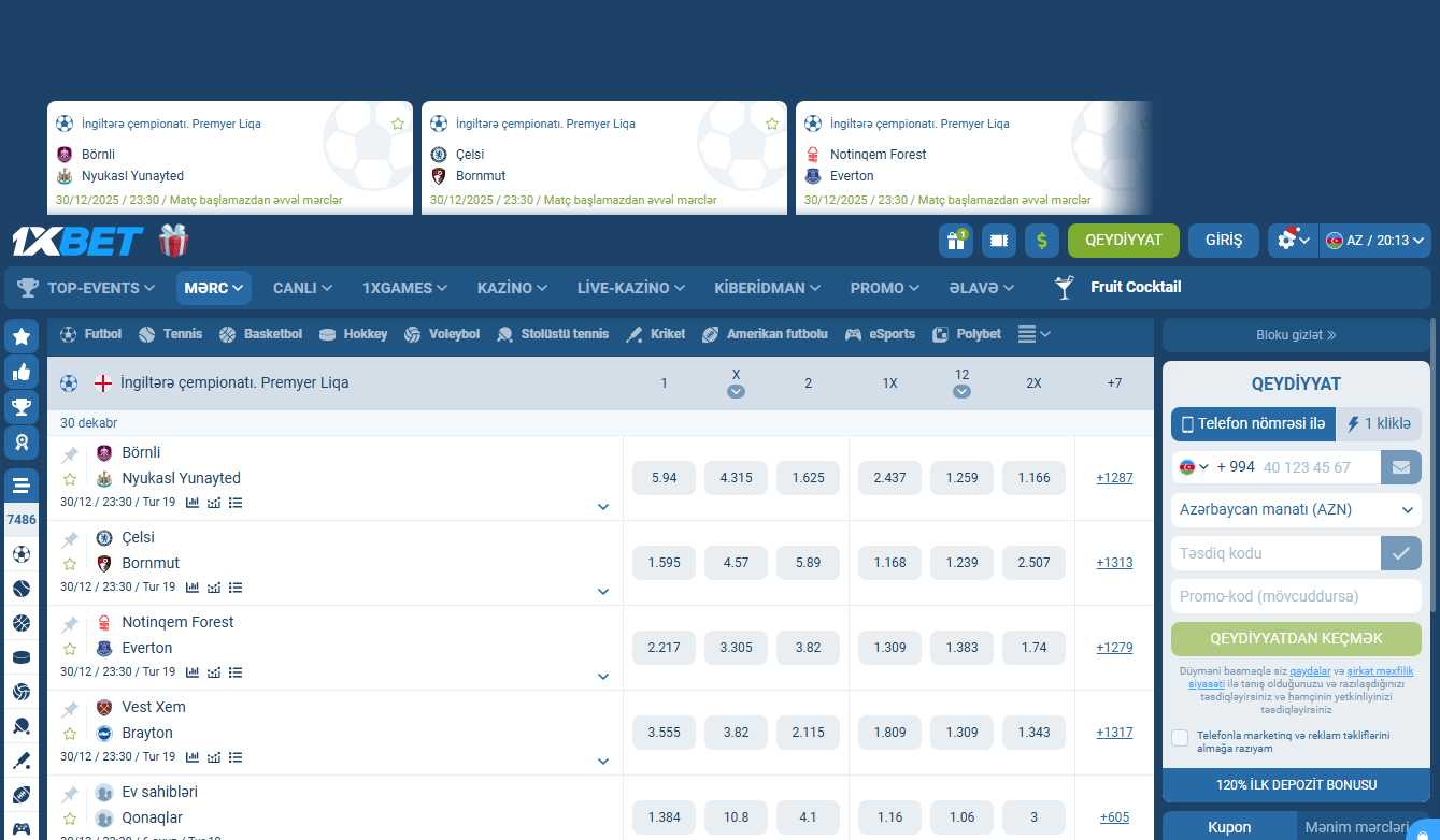 Futbol xətti Azərbaycan bazarının istifadə vərdişlərinə uyğun şəkildə qurulub. İstifadəçilər liqa və turnirlərə görə matçları asanlıqla tapa, əmsalları müqayisə edə və öz istəklərinə əsaslanan seçimlər formalaşdıra bilirlər. Yazının davamında matç öncəsi mərclərin xarakteristikası, 1xbet-də təqdim olunan seçimlər və necə mərc edə biıəcəyinizlə bağlı mühüm məqamlar nəzərdən keçirilir.